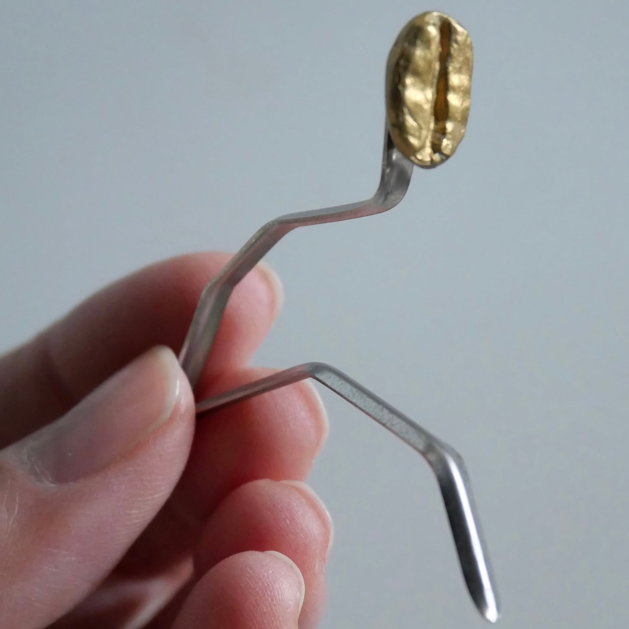 コーヒー豆から型をとった持ち手はシルバー、ゴールドの2色展開となり、幸せのハチドリをモチーフにした新パッケージで展開。