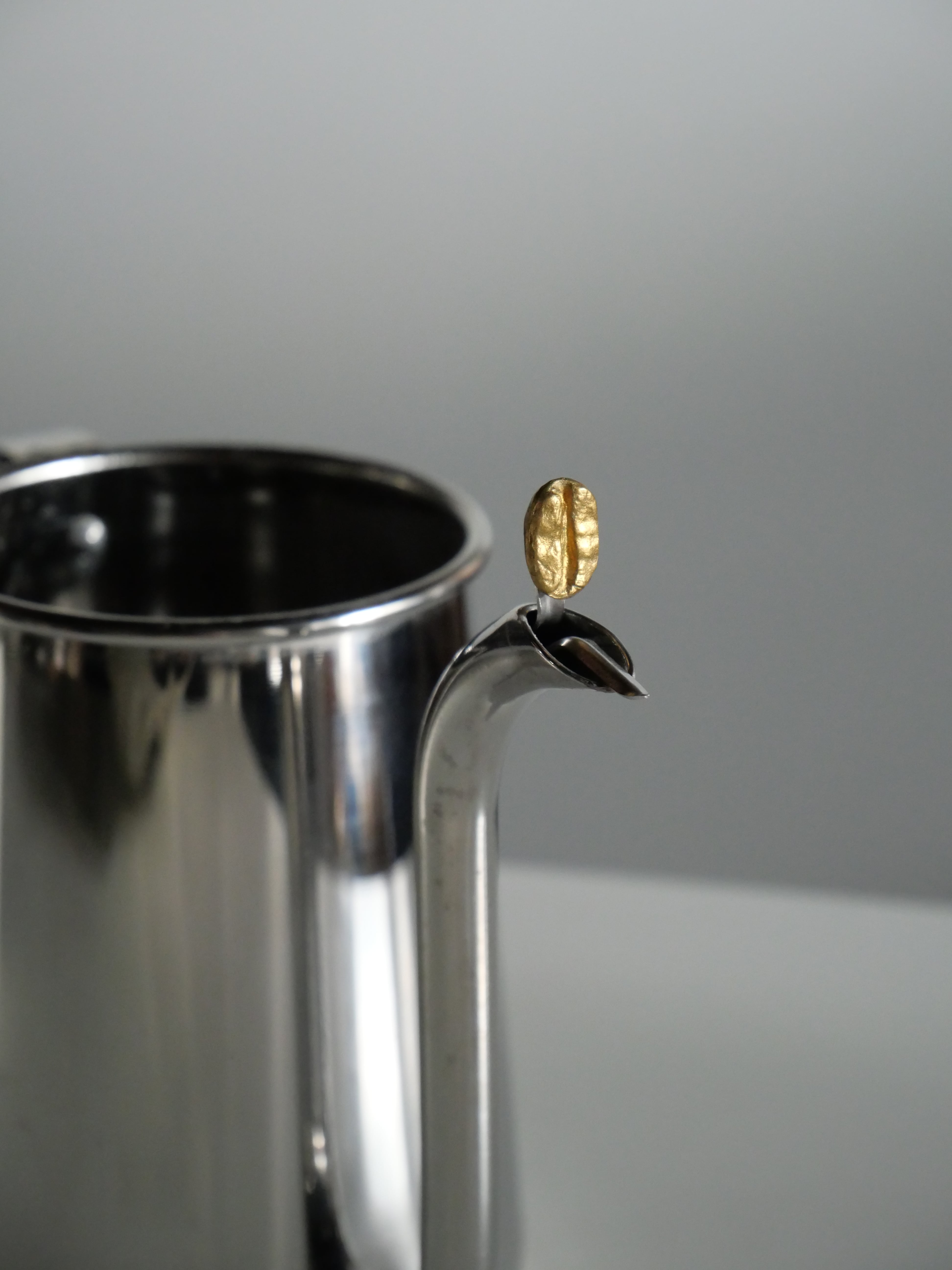 コーヒー豆から型をとったつまみ取手、従来のものよりも一回り細い形状や断面曲線のボディなど、全て職人がハンドメイドで製作しています。